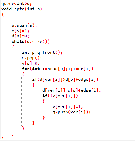 上述是spfa的模板,我经常使用的一个模板,邻接表存图,遍历,spfa是由队列实现的,可以用数组模拟队列来实现spfa,我就直接用了queue,毕竟比较懒。