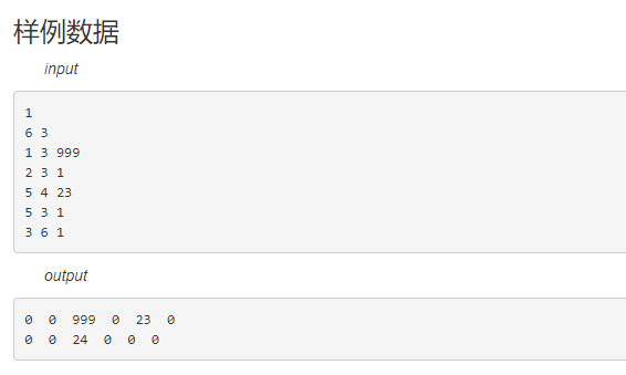 第2 ~ n行每行有3个整数x,y,z,表示x到y有一条边,边权为z(0<=z<=10000)。
