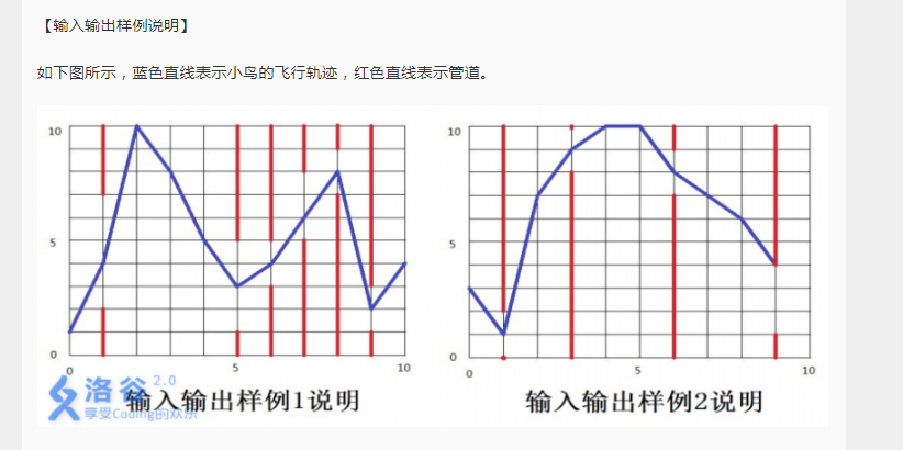 第二行,包含一个整数,如果第一行为 11,则输出成功完成游戏需要最少点击屏幕数,否则,输出小鸟最多可以通过多少个管道缝隙。