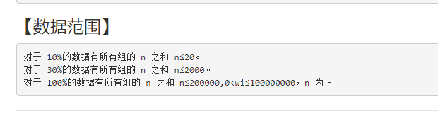接下来一行包含 n 个整数,第 i 个数表示 i 号结点的权重wi;