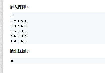 接下来n行每行n个整数,其中第i行第j个整数表示点ii到jj的距离(记为a[i,j])。