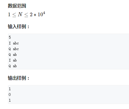 维护一个字符串集合,支持两种操作: