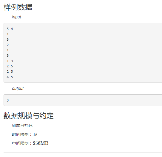 - 第N+2到N+M+1行: 第i+N+1行表示2个整数 A_i和B_i