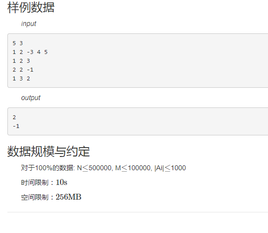 给定长度为N的数列A,以及M条指令 (N≤≤500000, M≤≤100000),每条指令可能是以下两种之一: