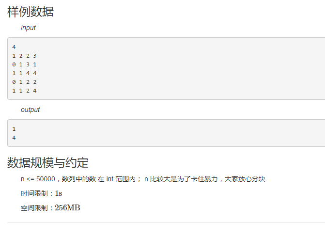 接下来输入 n 行询问,每行输入四个数字 opt, l,r,c, 以空格隔开